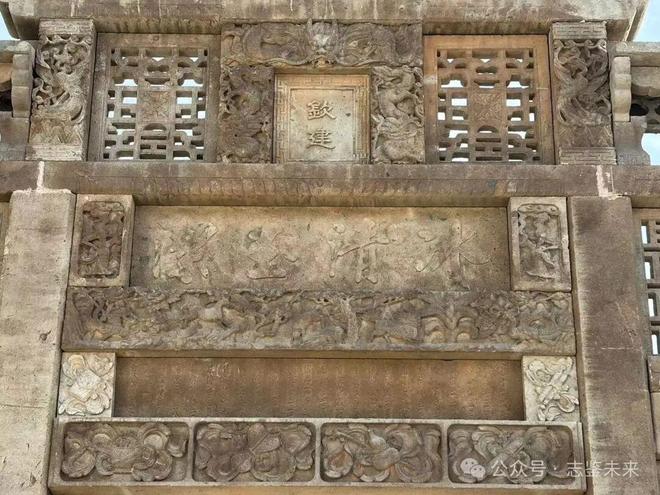 欧阳修广场东有一大牌坊,正面上书“圣旨 高风峻节 旌表吏部左侍郎谭尚忠坊”。