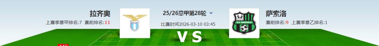 两队从以往交锋来看,拉齐奥占据优势,不过本赛季首次交手萨索洛主场曾击败对手。拉齐奥近期主力减员再加上周中多打了一场意大利杯,还有近期的糟糕表现,本场就是坐镇主场也很难有好的发挥。萨索洛目前只有联赛这一条战线,近期表现也是非常稳健,阵容也比较齐整,体能占优。综合以上分析,本场期待客场的萨索洛有机会收获不败拿分的理想结果。