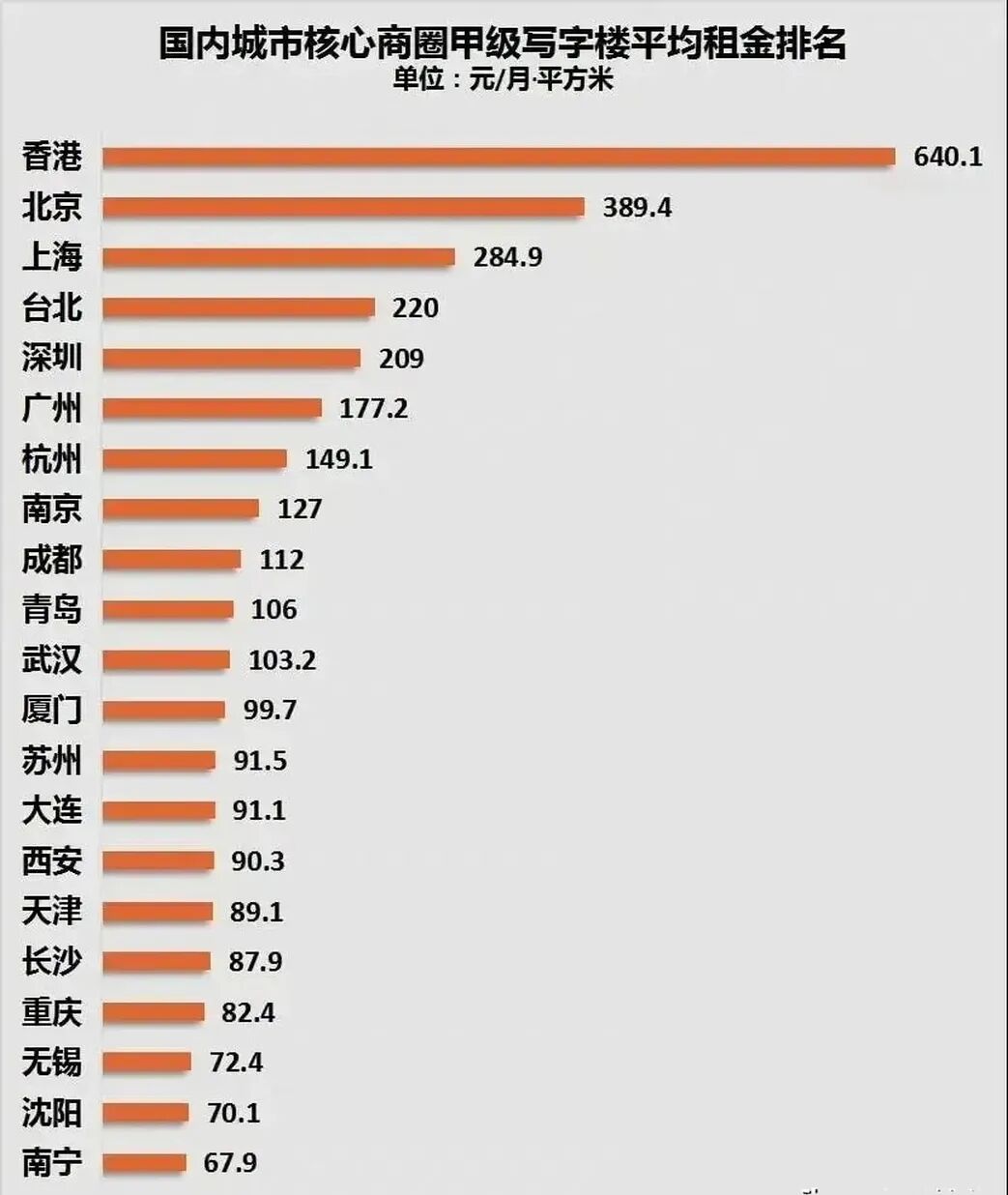 图/国内城市核心商圈写字楼平均租金排名