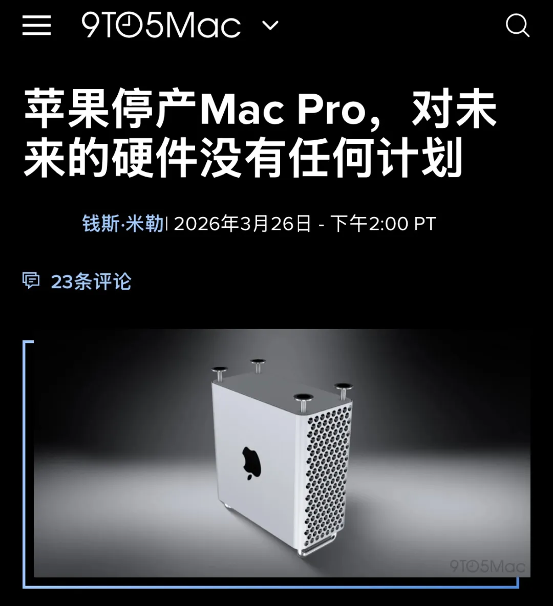 据外媒9to5Mac报道,苹果方面已向其确认,未来没有为Mac Pro推出迭代新品的计划。