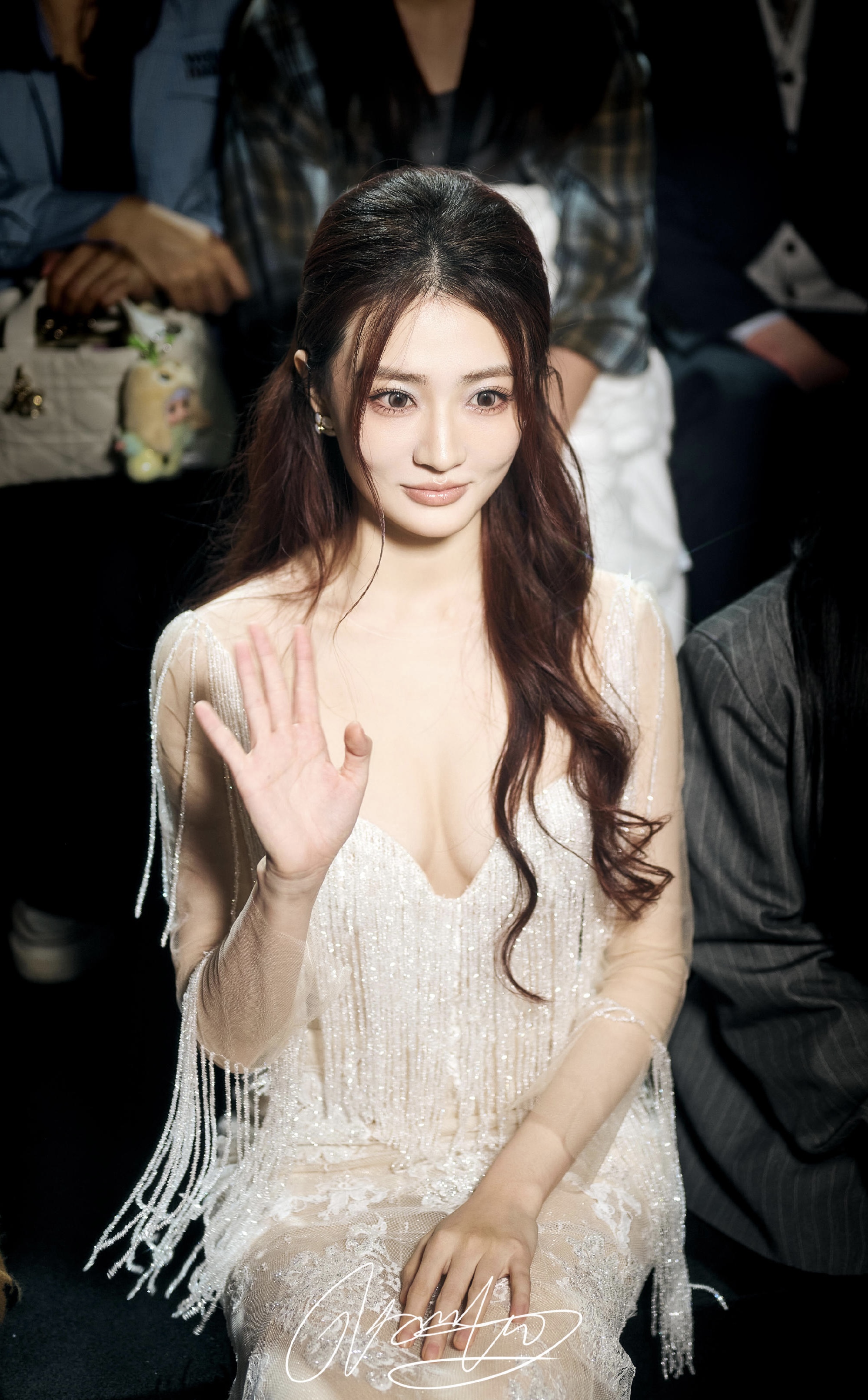 最近一次盛典,徐璐穿着银色深V吊带裙出场,灯光一打,肩颈线细得让PS都失业,锁骨能养鱼,腰线能过审,层叠裙摆还自带仙气buff,走路像把银河披身上。