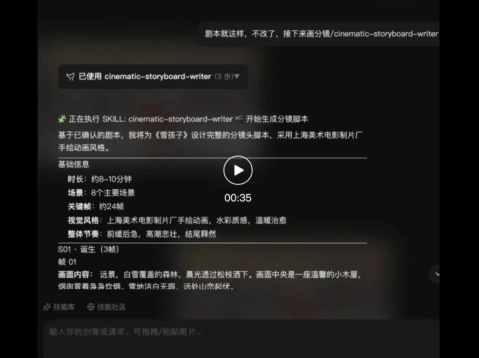 我尝试激活了其中几个 skills,用来快速写剧本和分镜。