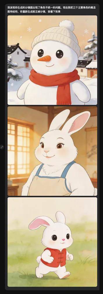 更重要的是,在生成结果有问题时,我可以随时改。哪怕后面已经走到了生成视频的阶段,想改分镜构图也是一句话的事儿,不用切换窗口,也不用换其他产品。这种想改哪儿改哪儿、想什么时候改就什么时候改的自由度非常贴合创作过程的非线性特点,用起来非常顺手。