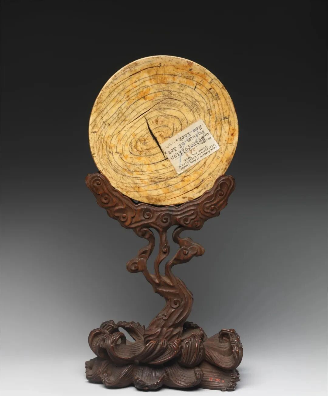 这件牙雕最终被美国企业家兼亚洲艺术藏家——欧文伉俪收藏。他手里有上千件亚洲文物。在2015年,欧文夫妇将包括这件圆屏在内的1300多件亚洲艺术品一次性捐赠给纽约大都会艺术博物馆,这件圆屏才正式成为博物馆永久馆藏,现在在219号展厅展出。这件牙雕因为其奇特鲜活的螭龙造型,老外觉得这是神秘东方文化的代表,每天大量的人前来观看赏析。