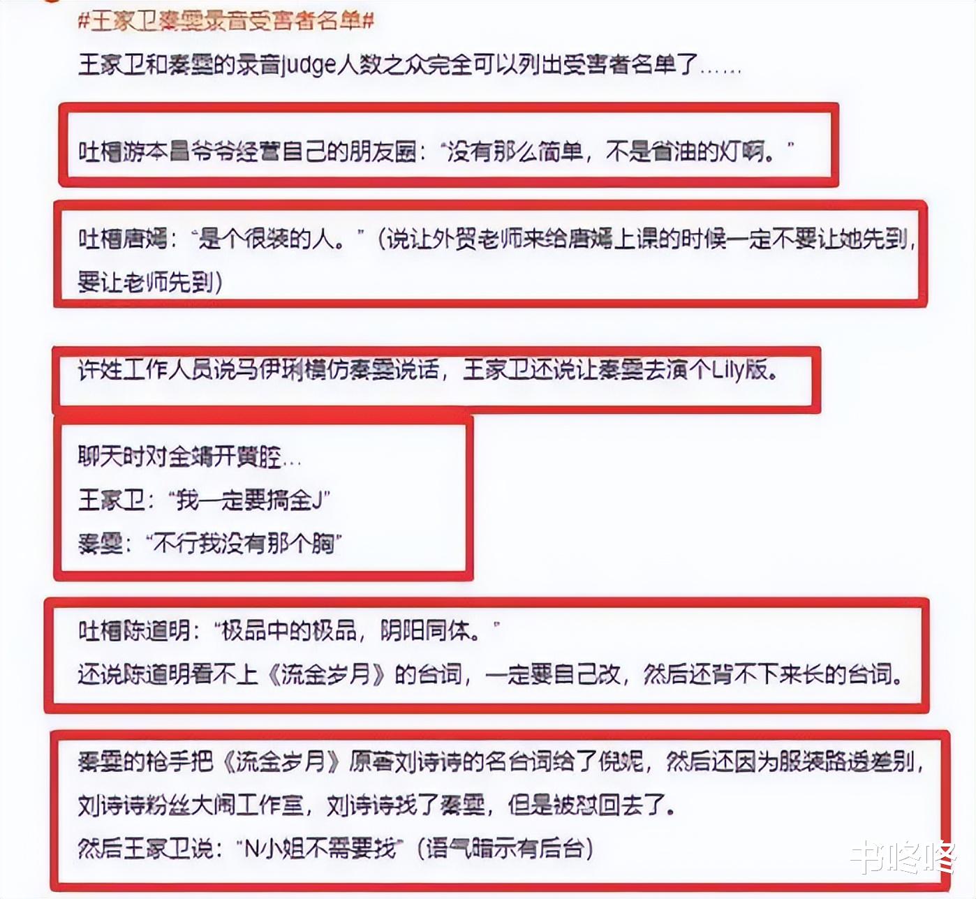 前段时间,导演王家卫与编剧秦雯的一段录音疑似曝光,不仅曝光了“艺术家”的真实面貌,录音内容也把许多艺人推上了风口浪尖。
