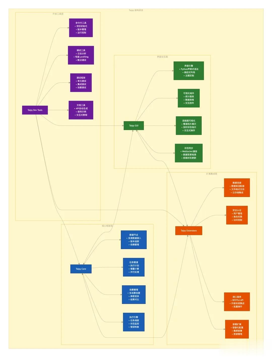 核心层专注于数据处理和业务逻辑,保证了计算效率界面层与核心层的松耦合设计,让 UI 开发不影响后端逻辑扩展组件采用模块化设计,按需引入,避免臃肿开发工具链完整,降低运维成本作为技术博主,我也特别关注 Taipy 的技术实现细节,下面分享一下它用到的核心技术方案: