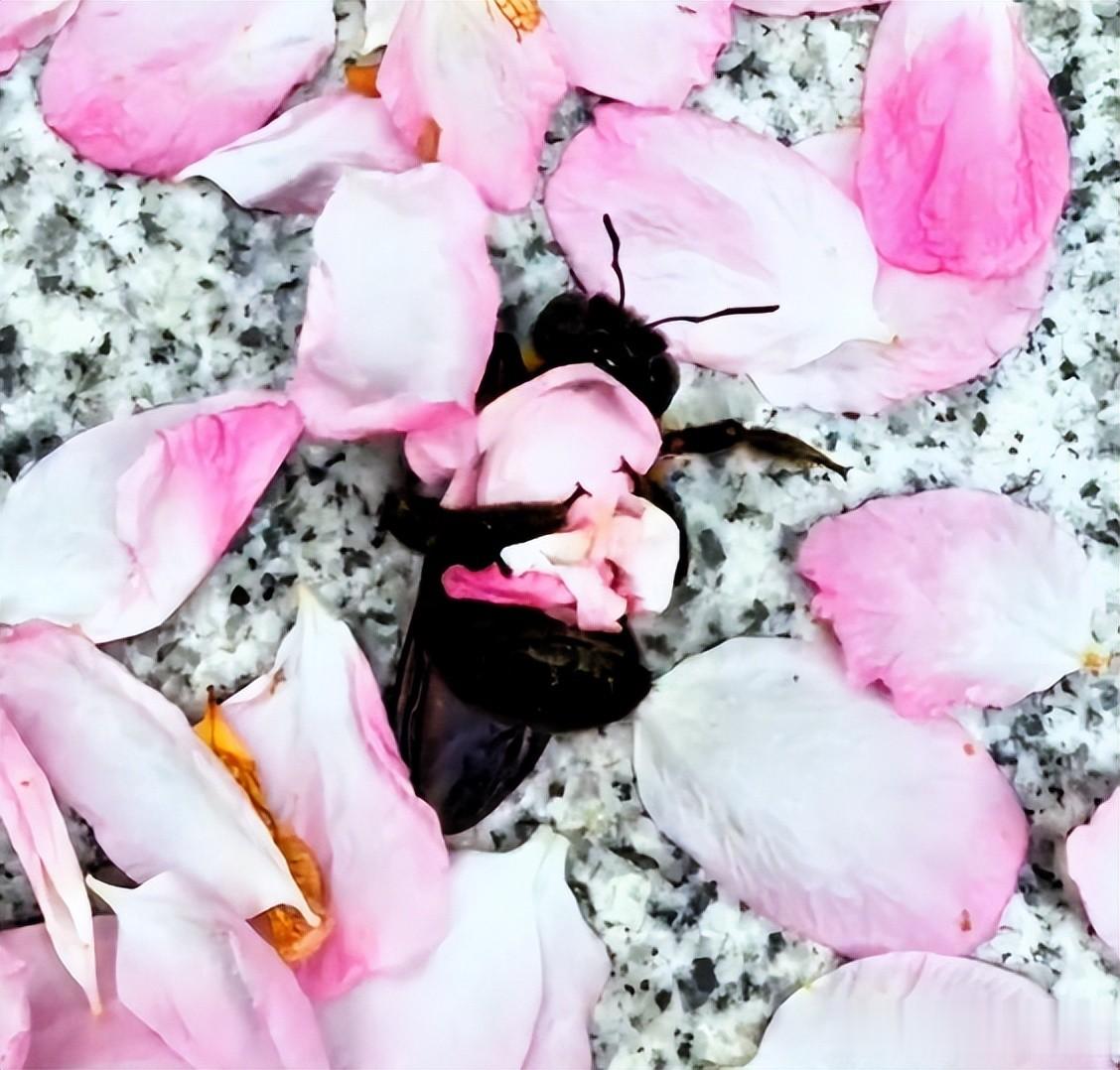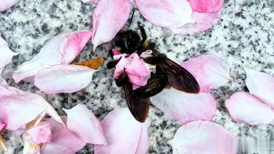 此时的蜜蜂会本能地用所有的足疯狂划动、抓挠,试图找到支点撑起身体,而网友看到的“揽花瓣、揉花团”,不过是它的足在失控状态下的本能挣扎,碰巧将周围花瓣抓到胸前、揉成一团,并非主动的“打包”行为。