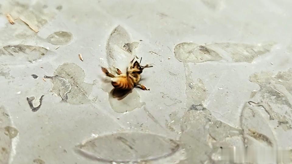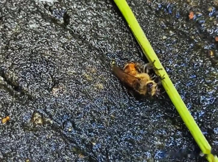 如果遇到此类情况,可以尝试用小树枝、草茎轻轻伸到蜜蜂足边,等它抓住后帮它正身,再将其放到阳光下避风处,如果只是冻僵或累瘫,蜜蜂可能逐渐恢复;如果已经中毒或衰老,通常难以挽回。