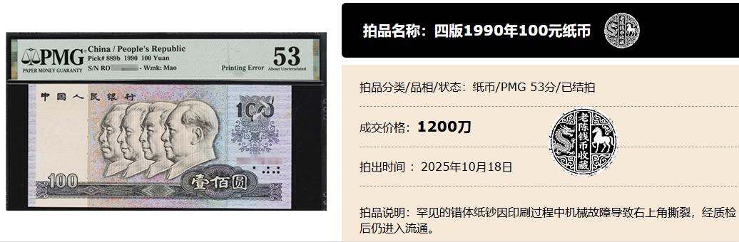 不过,今天老陈想要重点跟大家聊聊的,是四版后期发行的1990年的100元纸币。