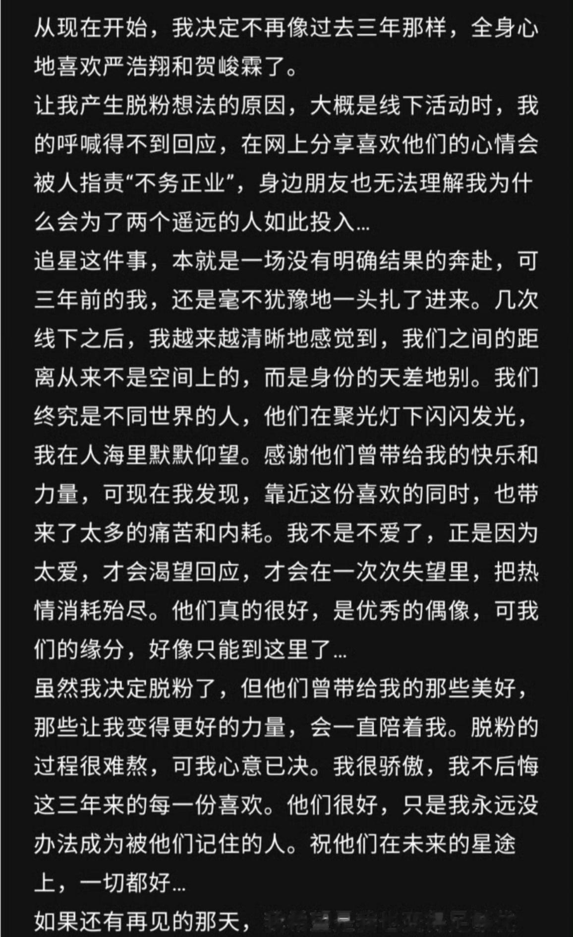 最后送给所有追星女孩一句话:追星是为了让自己快乐,不是为了给自己添堵。喜欢就继续支持,累了就体面离开,但请记得——当初那份心动是真的,这就够了。
