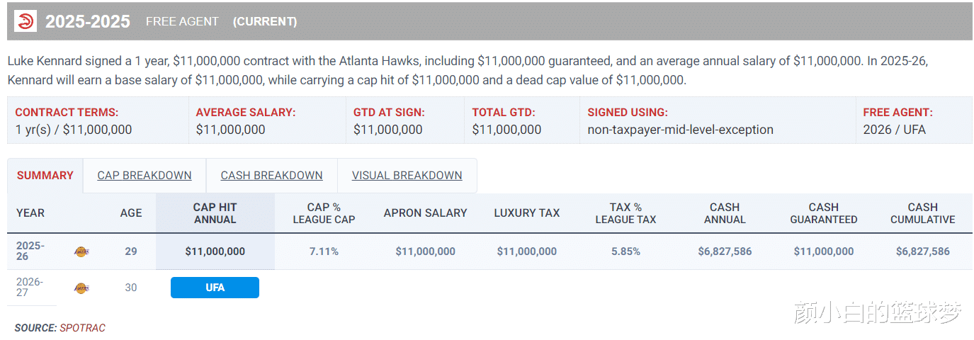 肯纳德本赛季的薪水只有1100万,他过去三年都是联盟三分最准的球员,他能来湖人都要感谢佩林卡的运作。