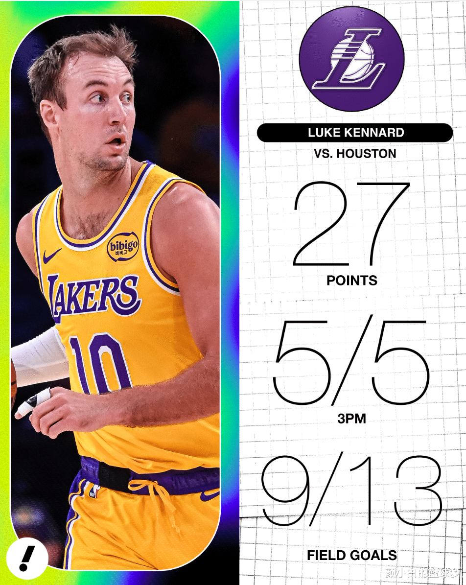 九、肯纳德是湖人队史季后赛第三场出手5次且全部命中的球员,比肩97霍里与91年斯科特;
