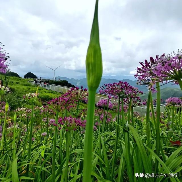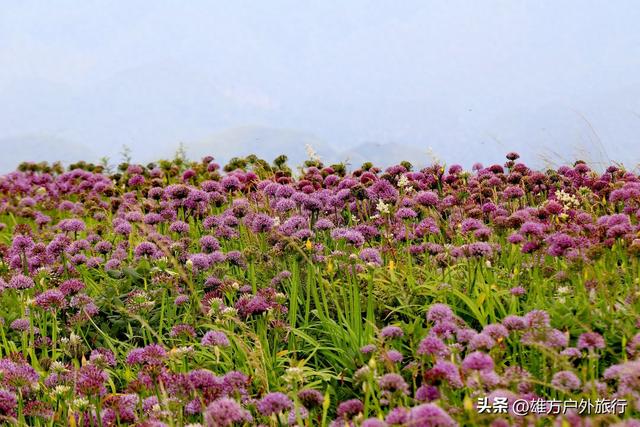 盛花期时,景区内铺天盖地的野生韭菜花开始绽放,整个山峦成为一片紫色的海洋。韭菜花灿若云霞,兼具无限娇媚与坚韧,置身花海,恍如进入童话的世界。