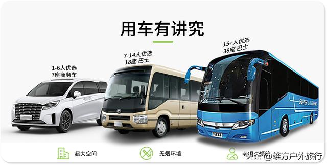 ➀ 用车:当地行程用车(根据具体人数选配车型:5-38座)