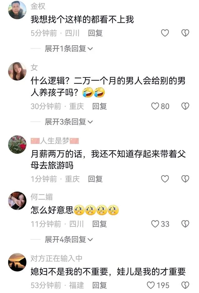 更戏剧性的是,当一个月薪8000的男士上前时,女士直接开出了两万月薪的“门槛”。在众目睽睽之下,女士似乎并不在意旁人的议论,坚持自己的标准。