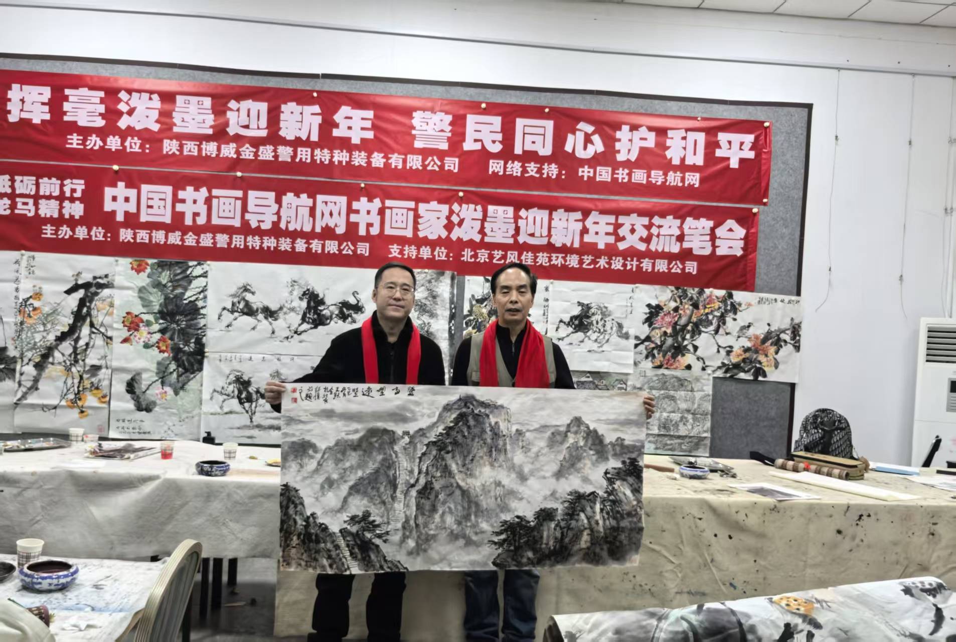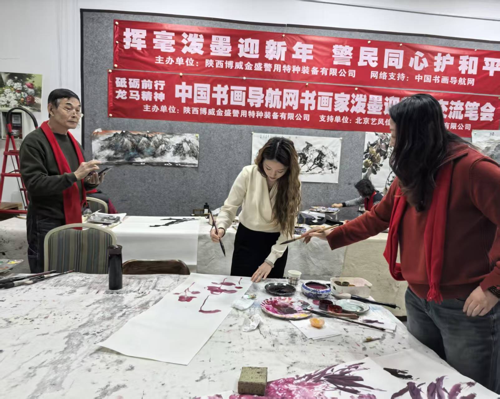 近日,由陕西博威金盛警用特种装备有限公司主办,北京润八文化有限公司与艺风佳苑环境艺术跃全艺术馆联合协办的“书画迎新年·警民护和平”书画名家笔会活动在北京温情启幕、圆满落幕。活动以笔墨为桥,串联起传统文化传承与警民鱼水深情,在辞旧迎新的喜庆氛围中,奏响了文化润心、共护和平的和谐乐章。