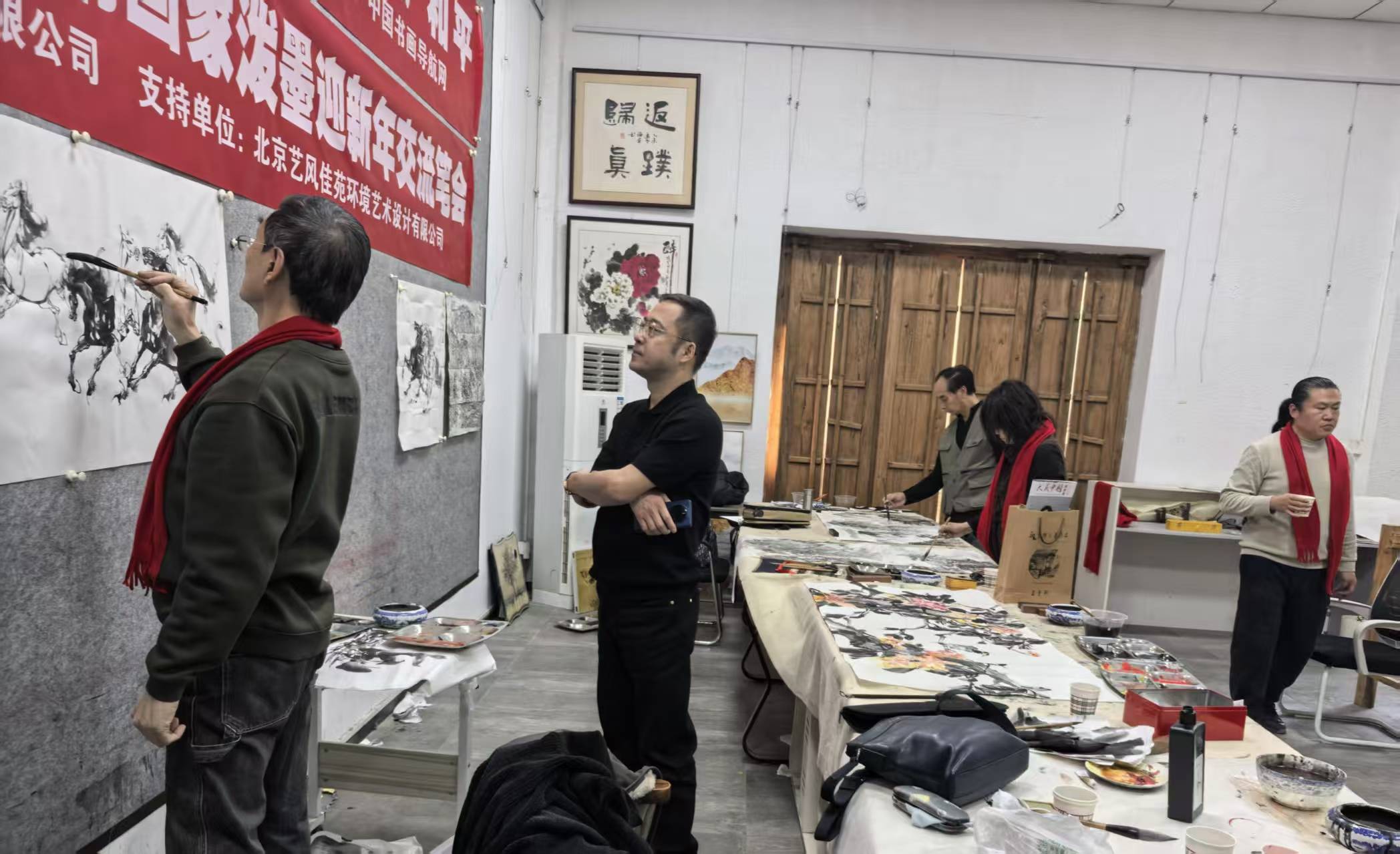 活动现场群贤毕至,星光熠熠。陕西博威金盛警用特种装备有限公司董事长加文渊先生亲临现场,与众多书画界名家共赴文化之约。出席本次笔会的艺术名家阵容鼎盛,涵盖了书画创作各领域的顶尖力量:中国美术家协会会员、中国大德书画艺术研究院院长李健康先生,国家一级美术师、中央书画院专职画家、雕塑家王跃全先生,中国美术家协会会员、中国女画家协会会员冯琦女士,中国美术家协会会员、中国工笔画协会会员宋艳云女士,一级美术师、中国当代写意花鸟画研究会副会长刁金女士,国家一级美术师、中国领导干部书画研究院常务理事彭晓梅女士,中国当代国画协会副主席、中国美术家协会及中国书法家协会双会员尹文红先生,百年巨匠传承人、清华美院客座教授董郎先生,中国艺术研究院艺术培训中心导师祝秀琴女士,职业画马名家李岩耕先生,中国书法家协会会员战国权先生,北京美术家协会、书法家协会双会员姜乃军先生等书画名家齐聚一堂,为活动增添了浓厚的艺术底蕴。