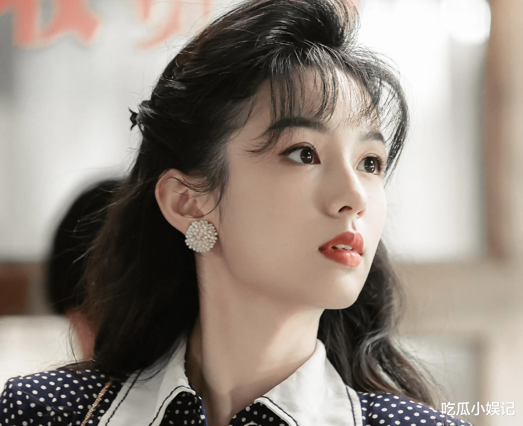 她身着竖条纹衬衫裙,空气刘海自然垂落,发尾微卷的弧度与动漫中毛利兰的标志性发型如出一辙。有眼尖网友将两者对比图拼贴后发现:无论是刘海的厚度、鬓角碎发的走向,还是整体发型的蓬松感,几乎达到“复刻”级别。更巧合的是,周也在剧中佩戴的珍珠耳环与毛利兰常戴的圆形耳钉形成跨次元呼应,瞬间点燃网友的创作热情。