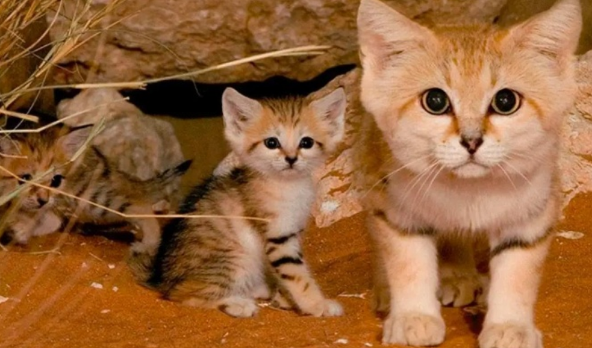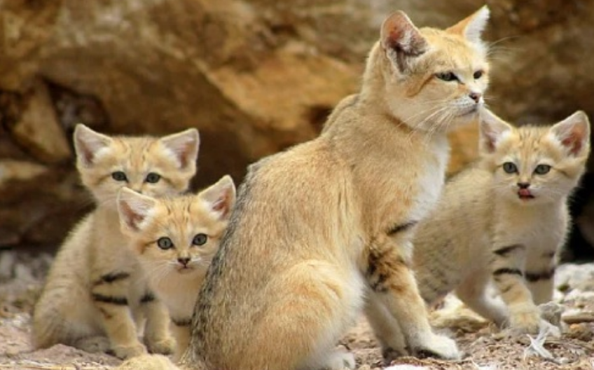 沙猫具有非凡的耐热能力,可以在白天极端高温的条件下生存。它们通常选择在最热的时候藏匿在阴凉的地方,如小洞穴或岩石下方,以避免直接暴露在阳光下。沙猫也会利用自己的掘洞技能,在沙地中挖掘洞穴以寻找更凉爽的环境。