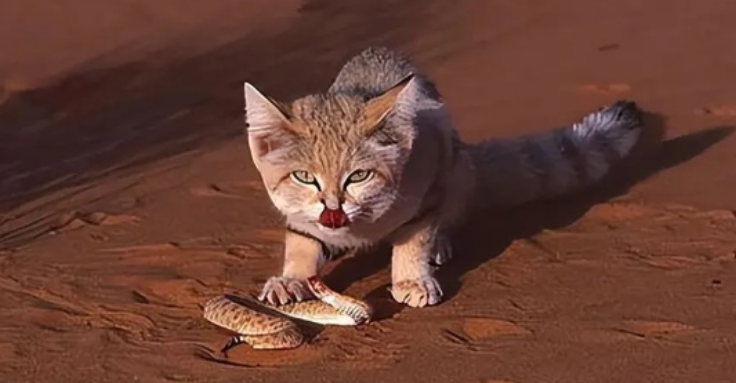 致命利器:揭示沙猫独特技能干嚼毒蛇的生存奥秘!