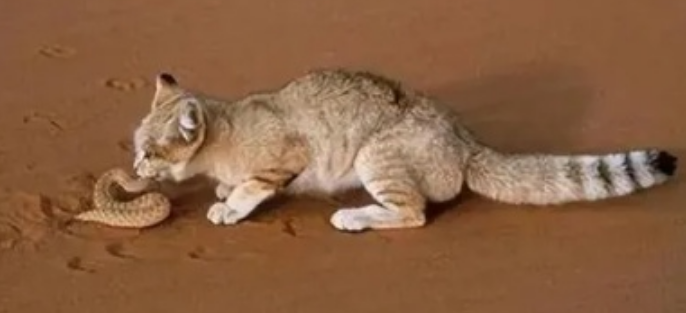 重点来了,你知道吗?沙猫,这种体型娇小的猫科动物,虽然外表可爱,却隐藏着惊人的生存技能。最引人注目的技能之一便是它们对付毒蛇的能力。