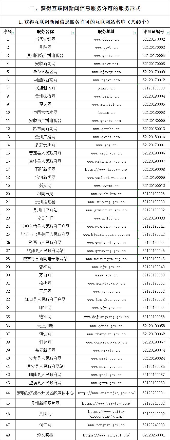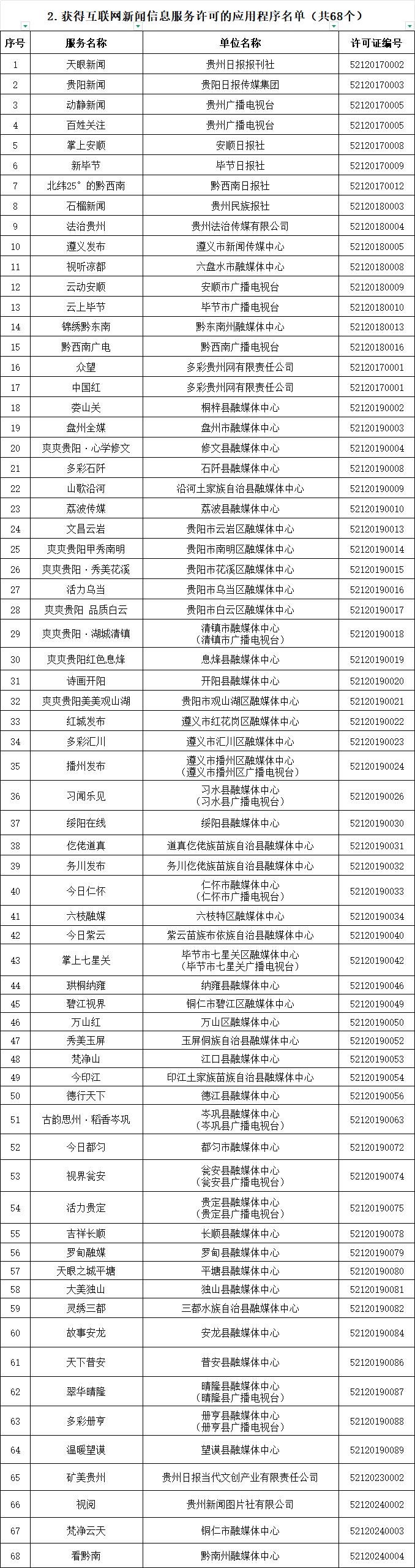 贵州省互联网新闻信息服务单位许可信息