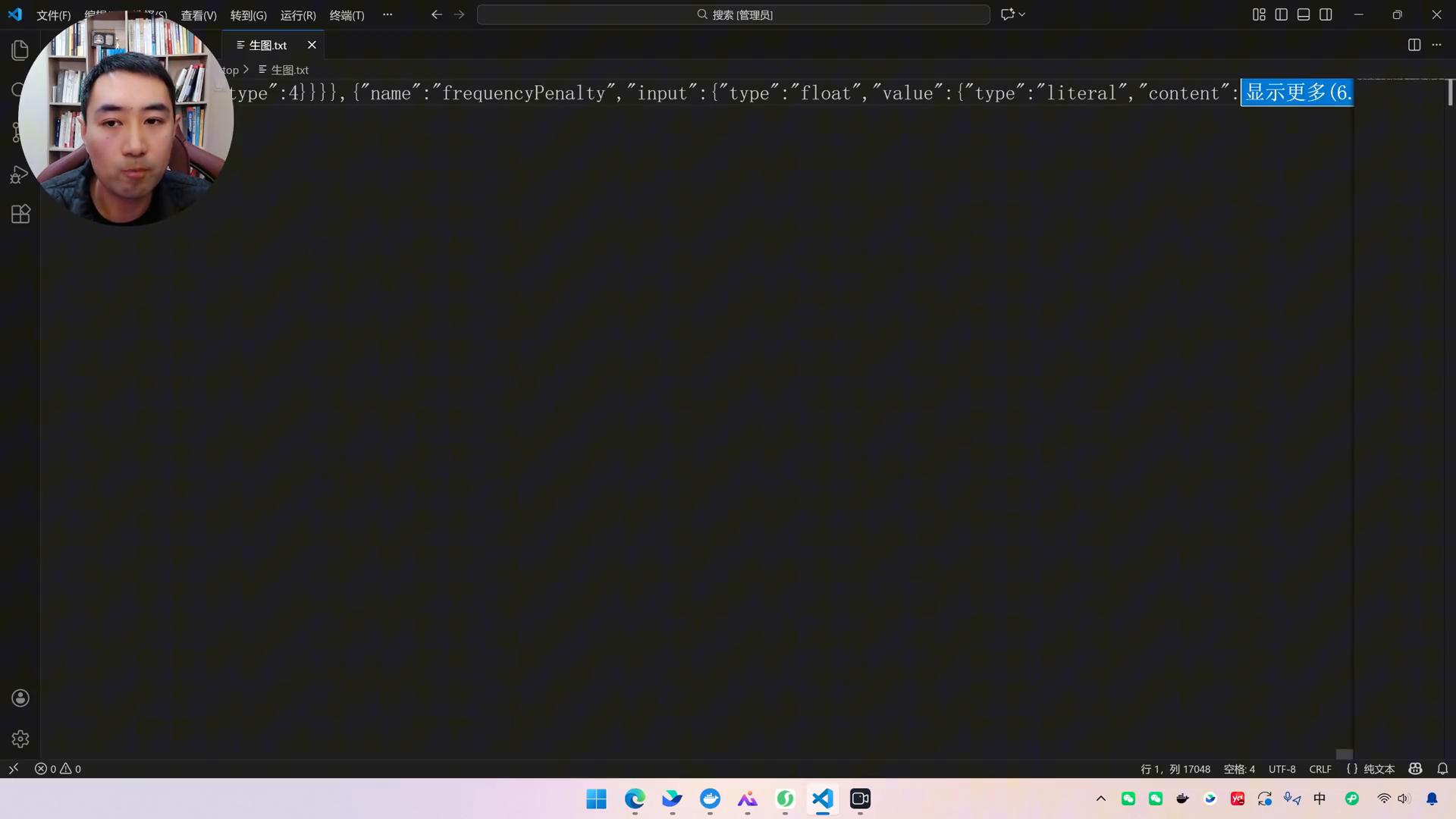 ·这时候怎么办?ctrl+a,这是全选,把所有的节点全部选中之后,ctrl+c进行复制。复制完成之后,这个时候在桌面上新建一个文本文档,随便去起一个名字,比如这是生图的,就叫做生图就行了。再把它打开,打开之后把刚才复制的进行粘贴,使用ctrl+v全部粘贴就行了。