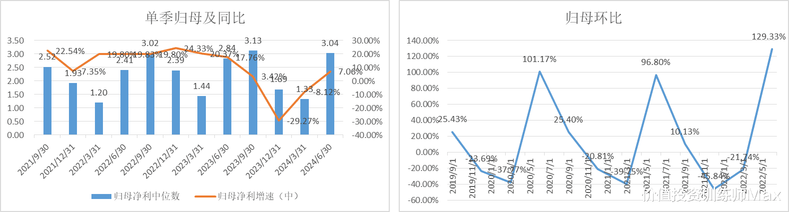 对于单季度数据,我们均取业绩预告的中位数来计算,2024Q2收入16亿元,同比11.06%,从2023年Q4的0.47%持续爬升。再看扣非净利润,2024年Q2为2.91亿元,同比增长8.7%,从2023年Q3的下降47.5%持续爬升。展望未来两个季度,由于医药医学服务的影响基本过去,2024年Q3与Q4业绩应该大概率不错。