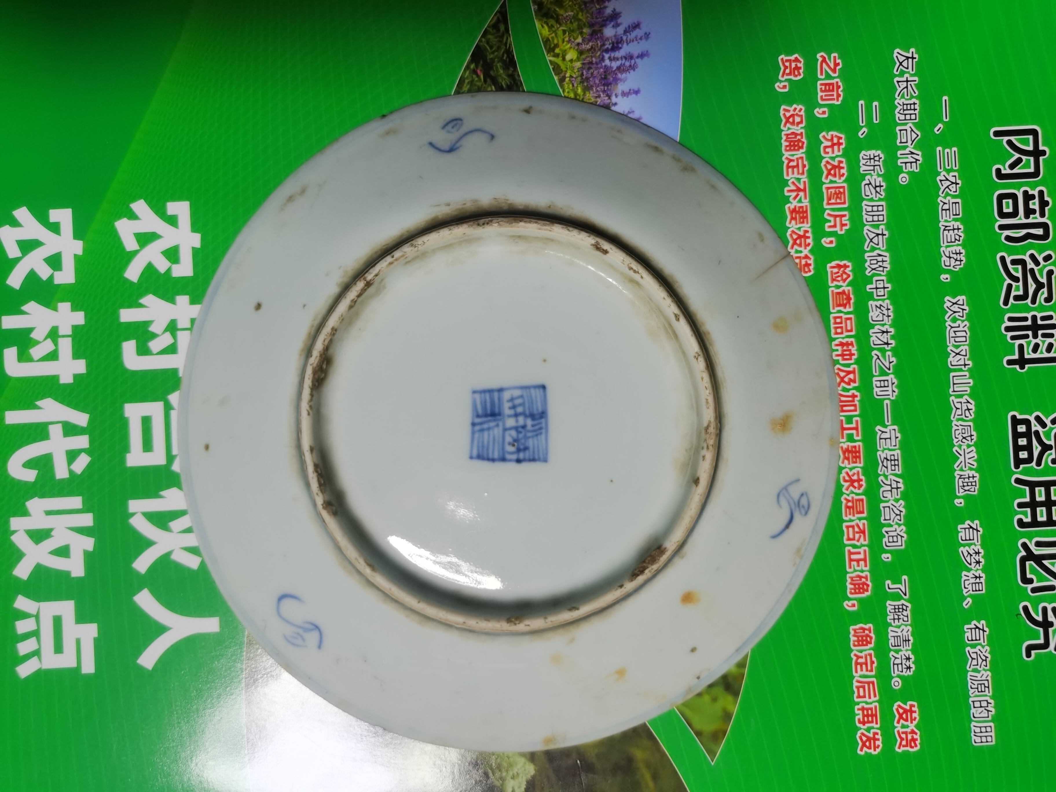底部:青花方款的 “民窑印记”盘底的青花方款虽字迹不算规整,却极具民窑特色。这类款识是清代民窑作坊的 “身份标签”,反映了当时民间制瓷的款识习惯,也是鉴定其年代与窑口的重要线索。那一抹淡蓝的青花款,是百年前制瓷匠人留下的 “签名”,质朴却真实。