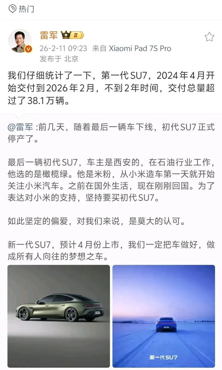 今年2月,初代SU7正式停产。这意味着小米汽车告别初创阶段,迈入全新发展征程。