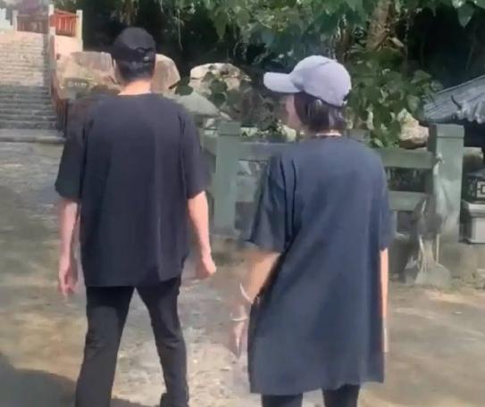 当天两人穿着黑色情侣T恤,头戴鸭舌帽,魏大勋走在前面,秦岚紧随其后,一路上都有说有笑的,秦岚脸上露出灿烂的笑容,面对周围人来人往的游客,两人也不避嫌,甚至连口罩都没有戴,看来,是完全不怕路人偷拍。