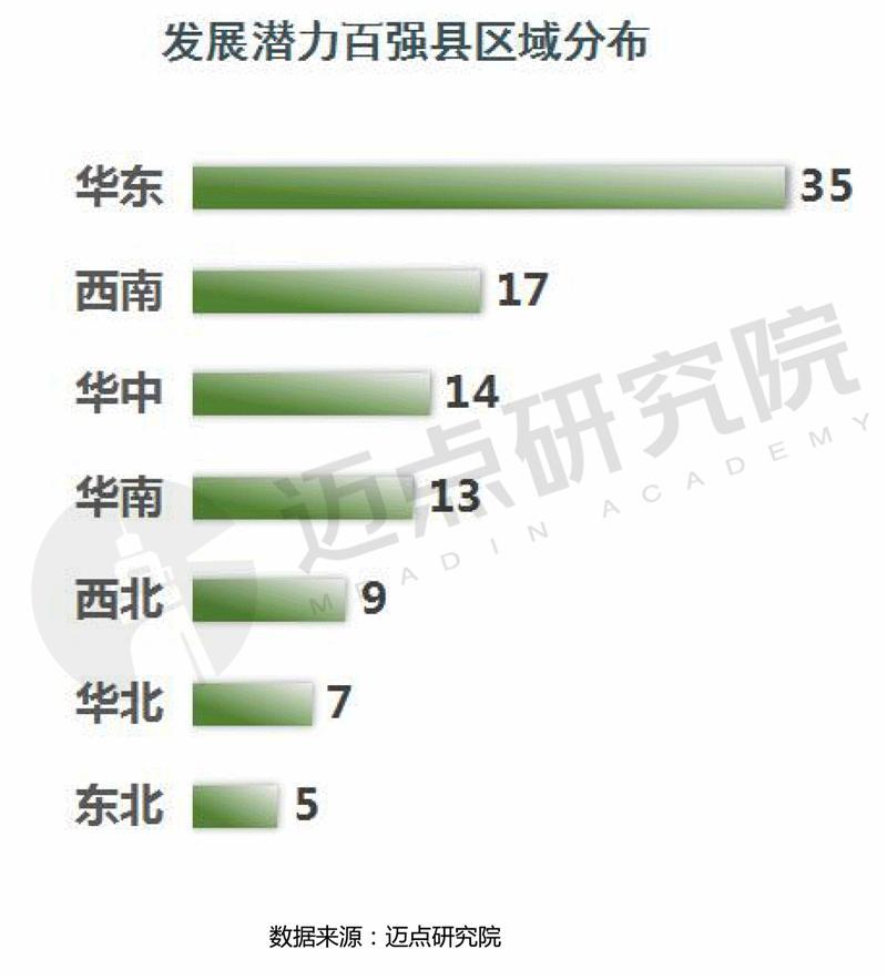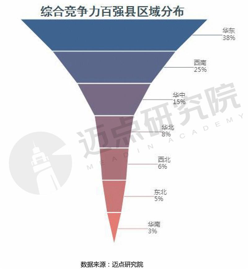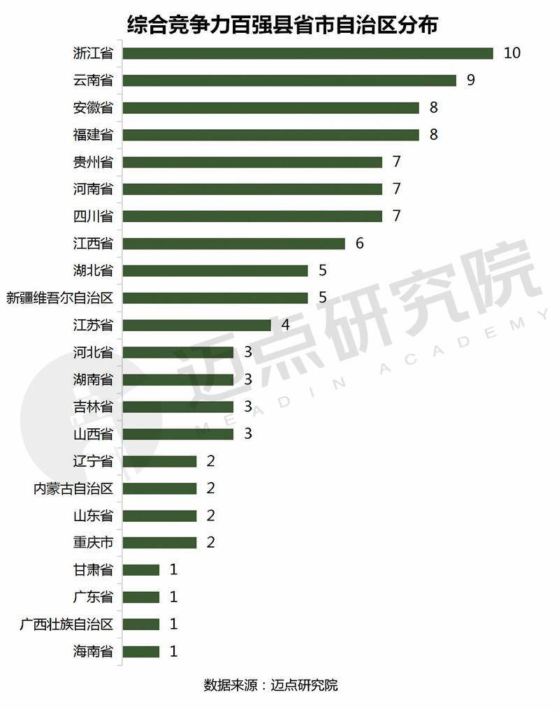4、区域分布:浙江领先优势明显,入围县域数量均最多