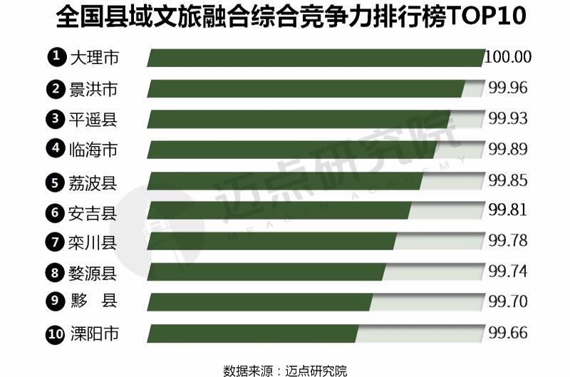 注意:企业或个人可参照全国县域文旅融合发展指数数据对县域发展进行监测和预测,但迈点研究院全国县域文旅融合发展指数(CTDI)不能与其县域发展完全等同。