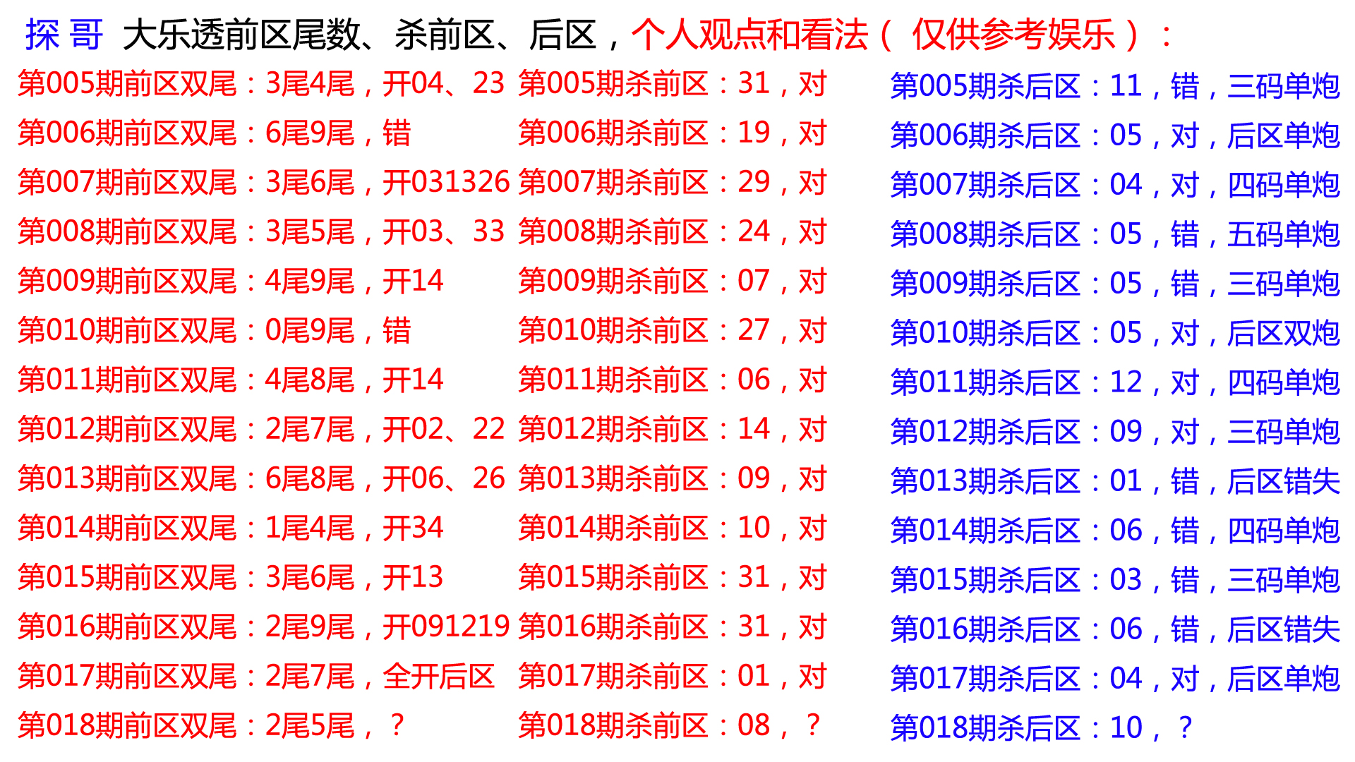 四、本期前区尾数、杀前、后区(个人观点看法,仅供娱乐调侃):