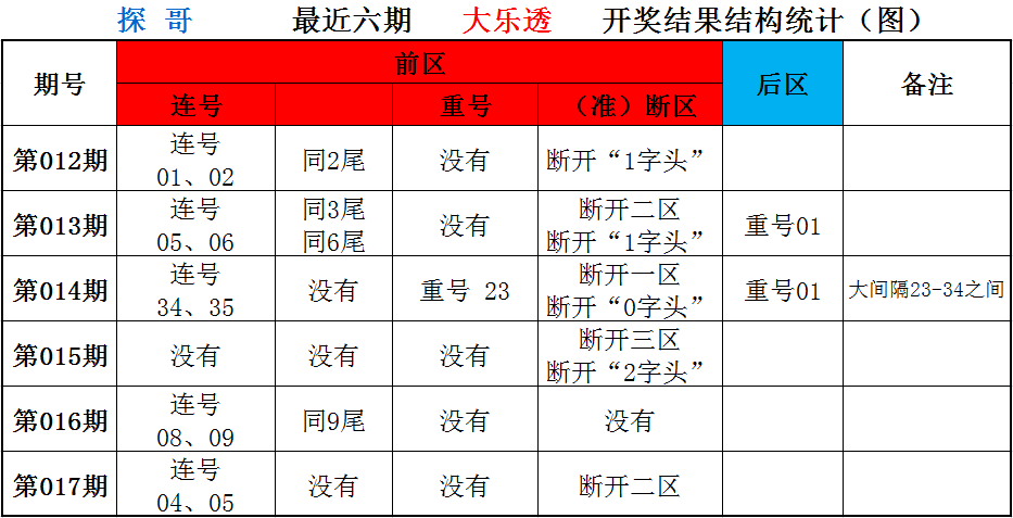 开奖号码结构:前区一对连号04、05,没有同尾,没有重号,断开二区。