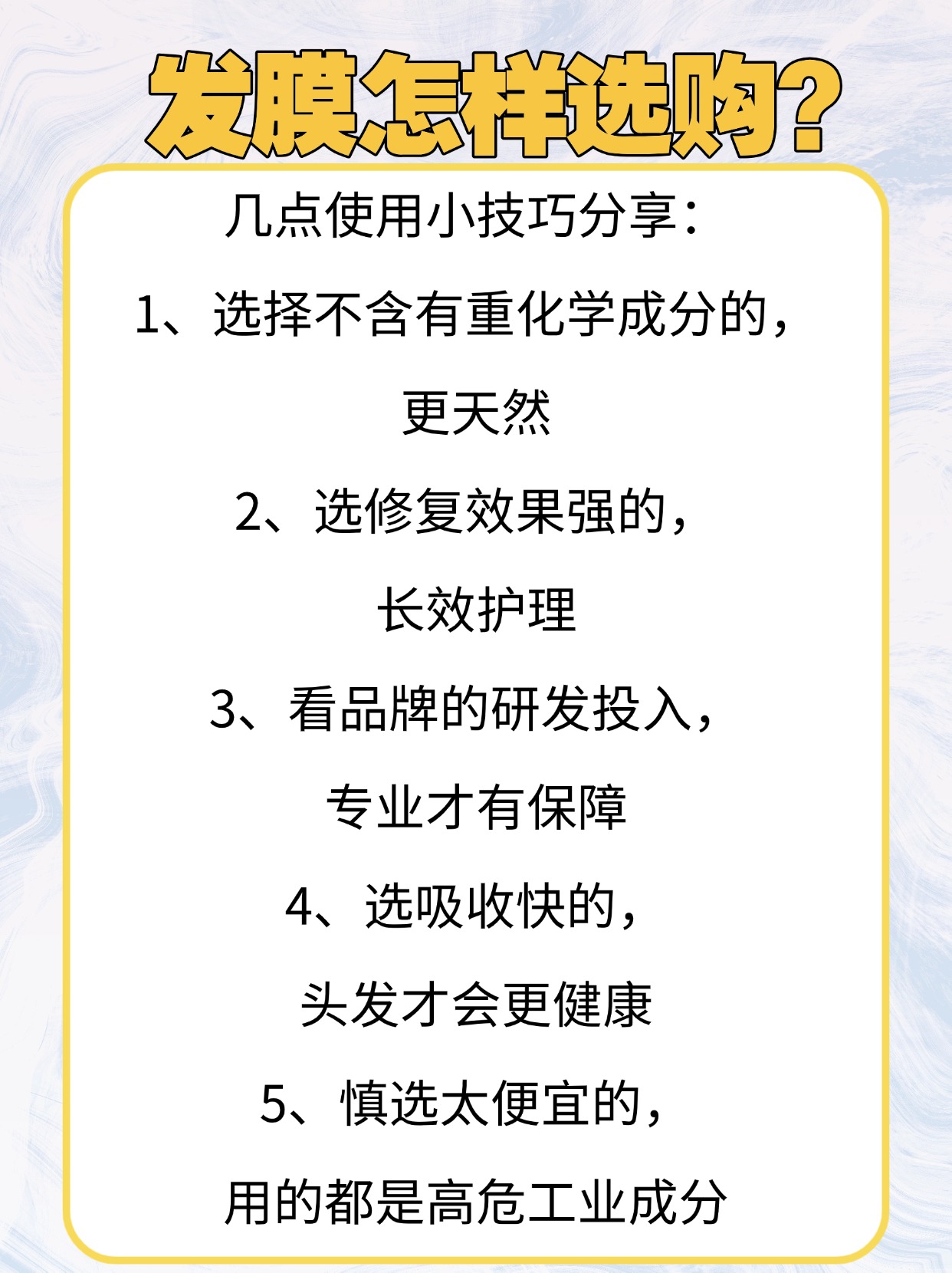 不少人用发膜没效果还踩坑,其实是陷入了头皮保养的误区,最常见的就是把发膜直接涂在头皮上,还按摩很久,这样不仅不会养护头皮,还会堵塞毛囊让发根变油变塌,另外天天用发膜也是误区,发膜营养浓度高,频繁使用会让发丝负担过重,显得厚重不轻盈,还有人洗完头头发湿漉漉就涂发膜,水分太多会稀释产品,根本吸收不了多少养分,正确做法是洗发后先挤干水分,发膜只涂在发中到发尾的受损区域,避开头皮两厘米左右,一周用一到两次即可,停留几分钟冲洗干净就行,我测评时见过太多姐妹因为用法不对,吐槽发膜不好用,其实只是方式没选对。下面是我整理的发膜避坑与选购要点,全是实测总结的干货,建议先赞藏备用。