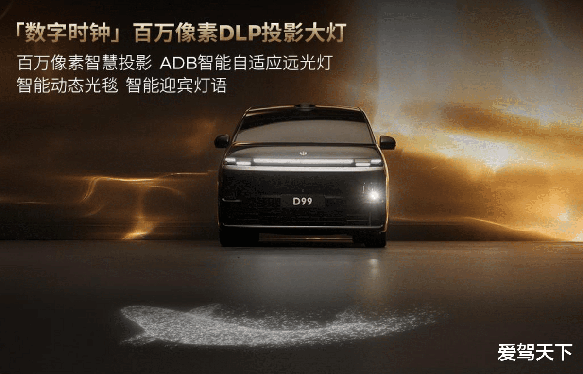 在造型上,零跑D99采用短前悬长后悬的布局,整体造型没有理想MEGA,或是极氪MIX那么创新,而是偏传统MPV风格。不过,零跑D99并没有采用夸张的大嘴式前脸,三段式贯穿日行灯增添了不少家族标志性元素,前包围采用和零跑D19同款设计语言,两侧为矩形远近光灯组,下方则为长条形AGS主动进气格栅,可进一步优化风阻,提高能效。另外,零跑D99的前灯组还具备投影功能,预计只有顶配车型标配。