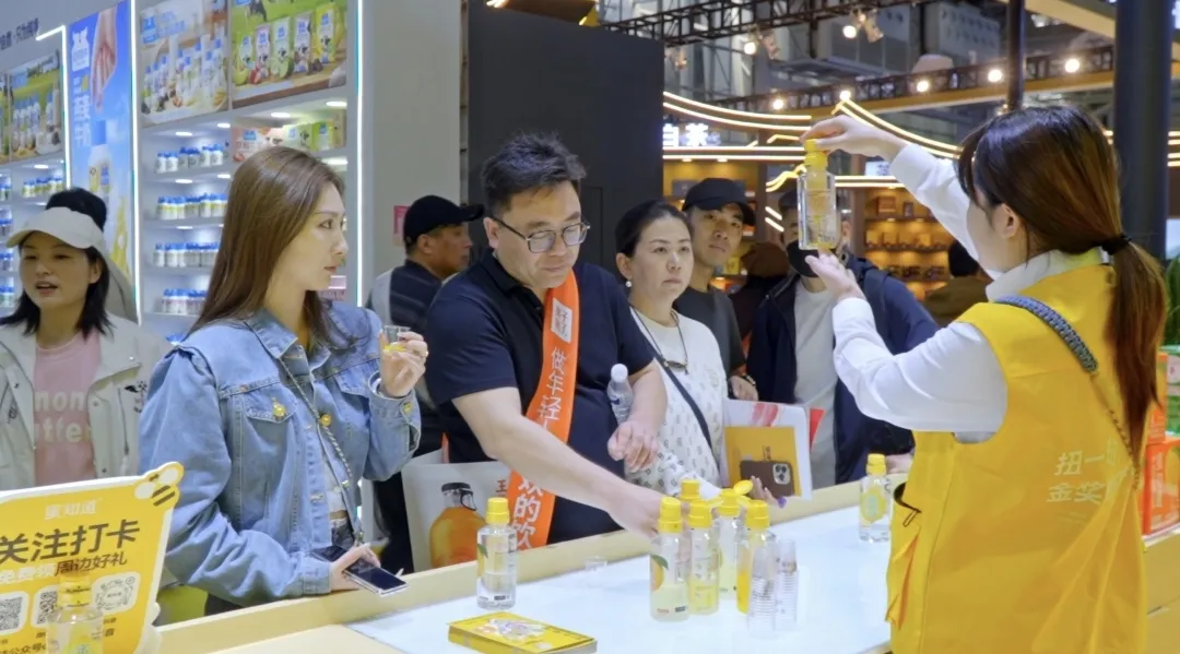 在刚刚结束的全国春季糖酒会上,甜蜜家蜂业携自家品牌「蜜知道现摇蜂蜜水」重磅亮相,展位前人潮涌动、咨询不断。
