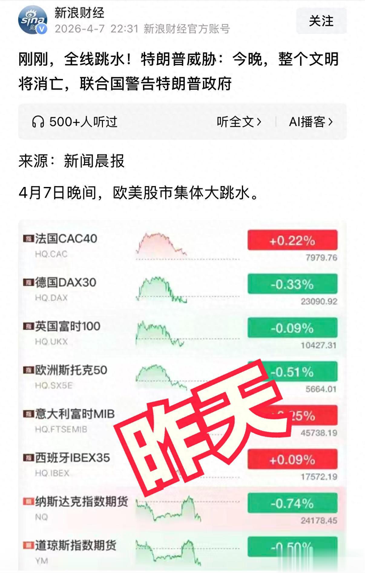 最关键是,川普的话反复性太强,昨天还说要让伊朗变成焦土,导致美股一度大跌,结果今早又说接受和谈,促成A股大涨,今晚美股估计也能大涨了~