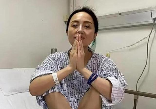 照片里她穿着病号服,坐在病床上,虽面带笑容但整个人明显消瘦。