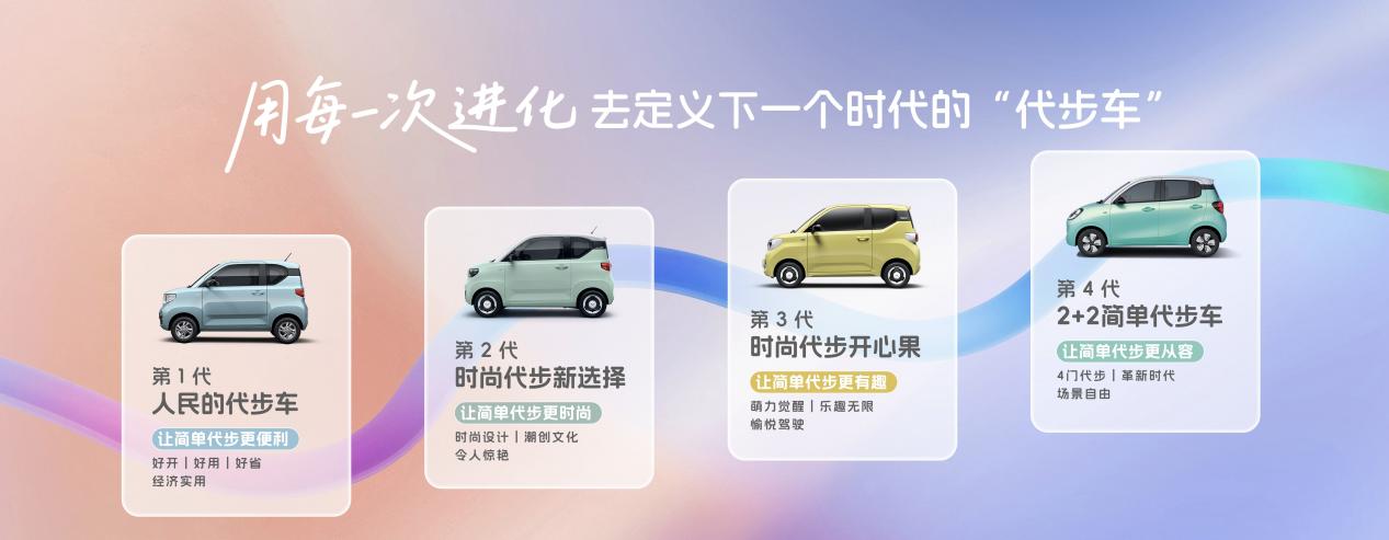 作为中国品牌纯电车销冠,宏光 MINIEV 自上市以来累计销量已超1100 万辆,成为名副其实的国民代步车。第五代车型以 "四门玩趣代步车" 定位,进一步巩固市场领先地位,满足年轻用户对代步车 "好看、好开、好用、好省" 的核心需求。