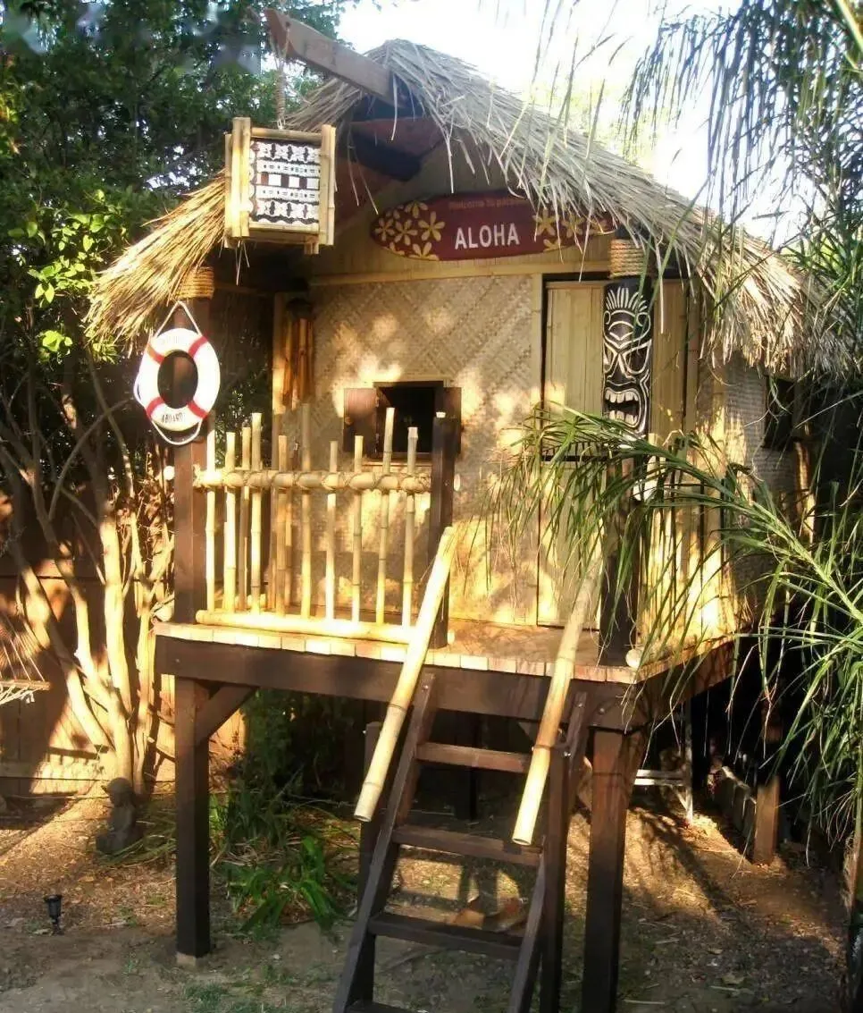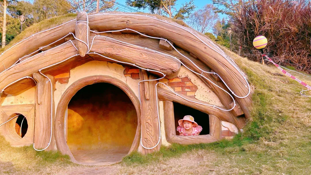 比如十分符合儿童审美情趣的秘密小屋,霍比特小屋。矮小的原木房屋和大地紧紧拥抱在一起,房门低矮,屋内却包罗万象,如同童话里的矮人居所。