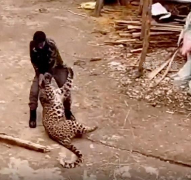 就在千钧一发之际,众人纷纷提棍赶来支援,才将那豹子制服。