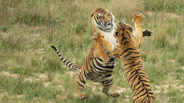 华北虎虽然体型小,但战斗力不差,它有着454公斤的咬合力,1吨左右的拍击力,与东北虎不相上下。