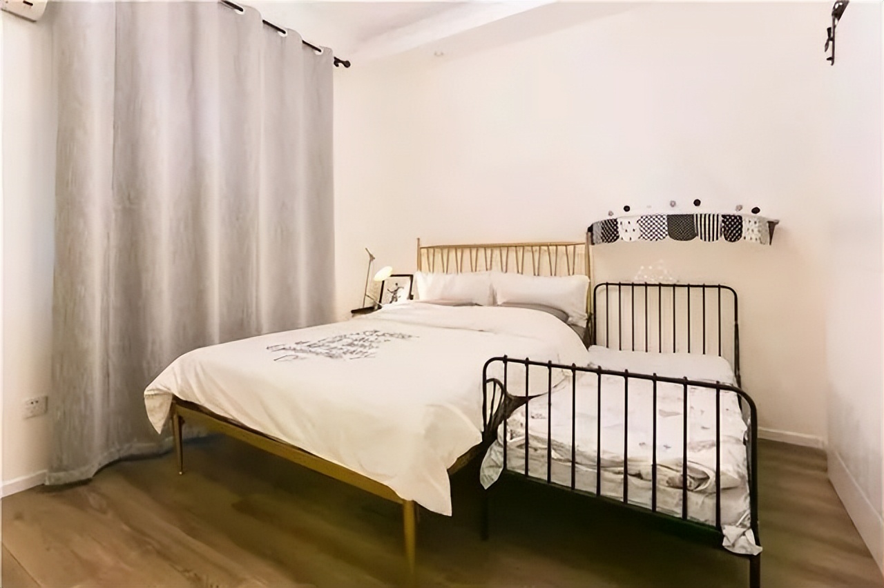卧室简洁清爽,东西不多看起来不会那么拥挤。孩子还小跟着我们一起睡,方便晚上照顾。