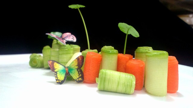 莲藕去皮洗净,切成薄片;胡萝卜切碎备用。