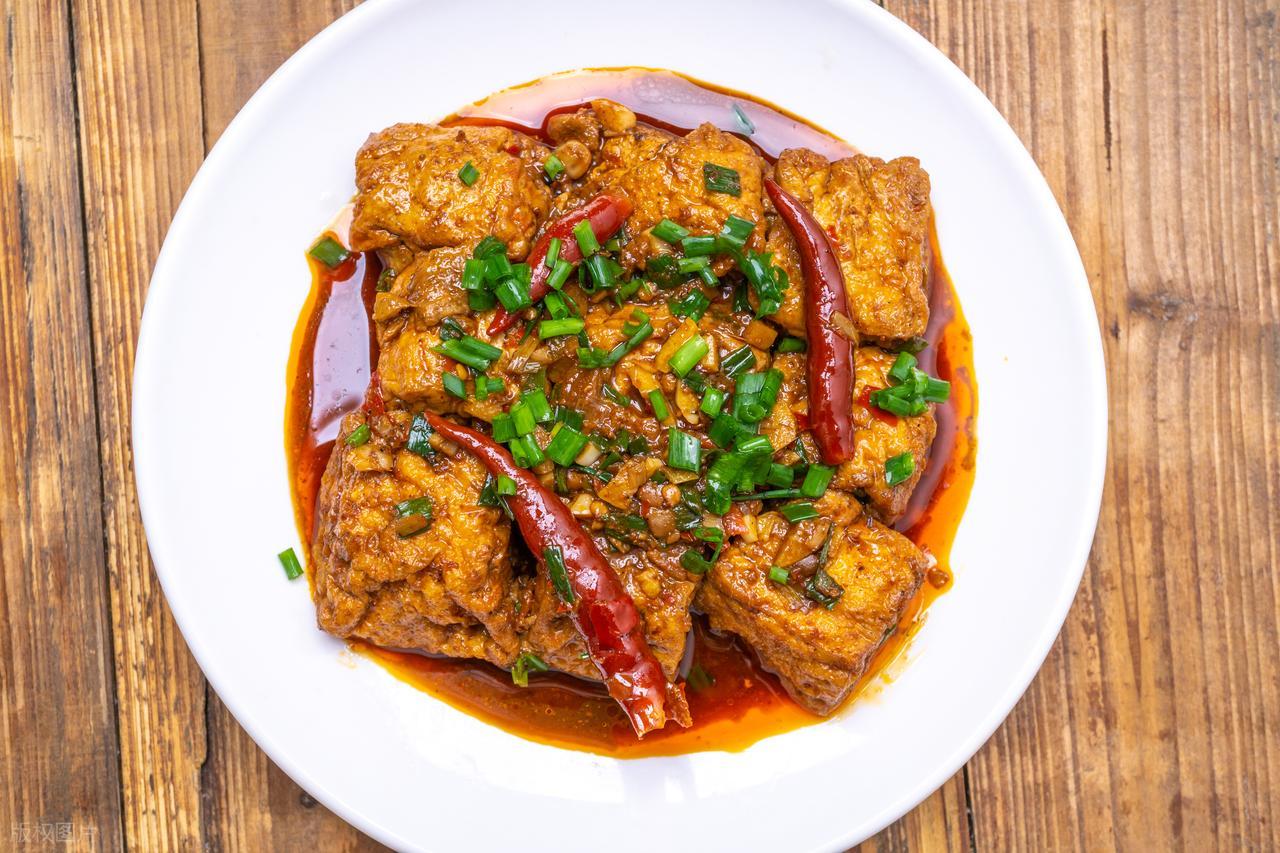 寓意:豆腐谐音“都富”,寓意家家都富、多福多财。红烧豆腐色泽红亮,口感鲜嫩,象征着生活红红火火、福气满满。