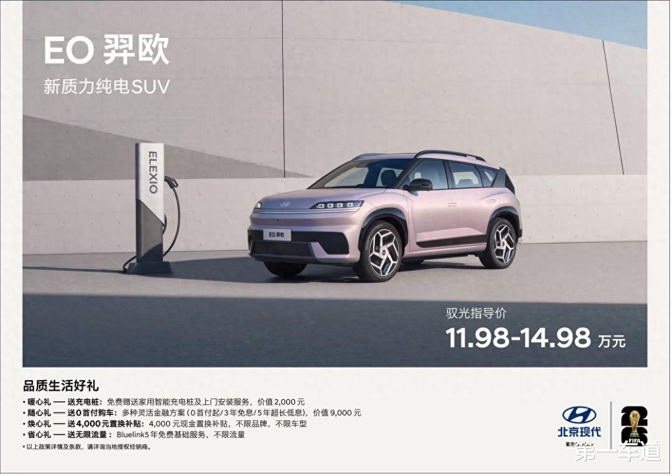 10月29日,北京现代首款纯电平台SUV—EO羿欧正式上市,驭光指导价:11.98-14.98万元。同时,发布会也公布了EO羿欧“送充电桩”、“送0首付购车”、“送4000元置换补贴”、“送无限流量”在内的“品质生活好礼”购车政策。