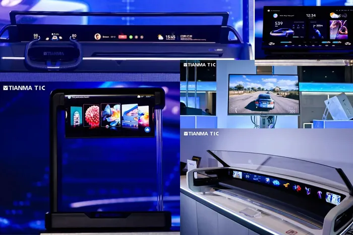除此之外,在车用显示领域,天马以“天轩”系列,通过形态、工艺、交互等全面创新,构建未来感智能座舱体验。展示了全景沉浸天轩屏、IRIS HUD光影全景视窗天轩屏、流云曲面中控天轩屏、灵动卷曲天轩屏等。尺寸包括49.6英寸,1.25米超广曲面、13英寸L形曲面、17英寸电动伸缩屏,可在14.9英寸控制屏与17英寸影幕间6秒切换。其中,“天工屏”特色展区带来护眼、通透、高刷等极致视觉体验;“天轩屏”展区则汇聚了仰望U9/仰望U7、极氪009光辉版/极氪9X、蔚来ES6、小鹏X9、乐道L90、理想i6等高端车型,带来沉浸式座舱体验,生动勾勒了智慧出行的未来图景。