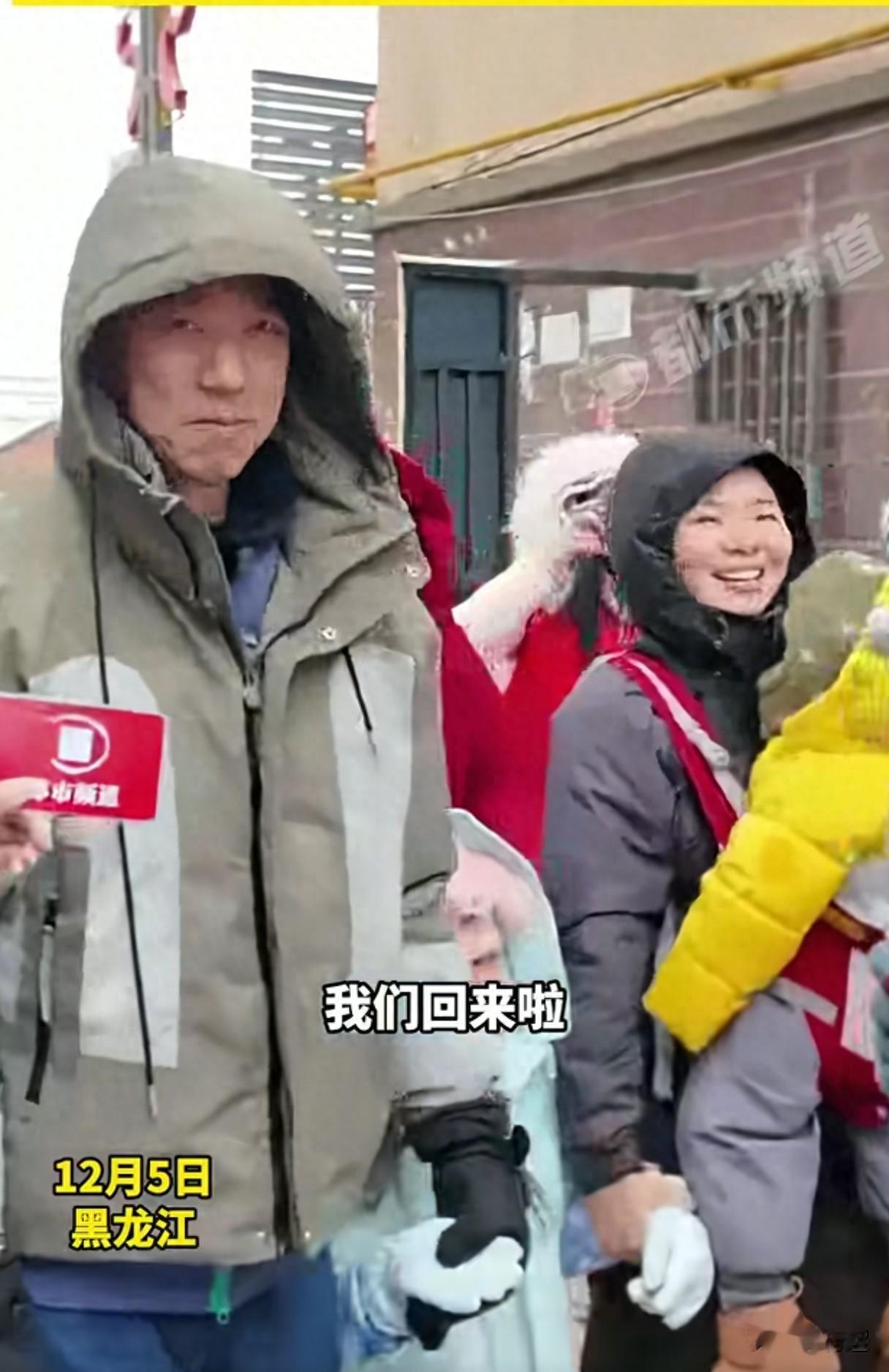 沈晓阳带着妻子和孩子一起回家,在路上,沈晓阳妻子胸前背着孩子,非常爽朗地一路高喊着“我们回来啦”!仿佛要让这份喜悦给全世界知道。
